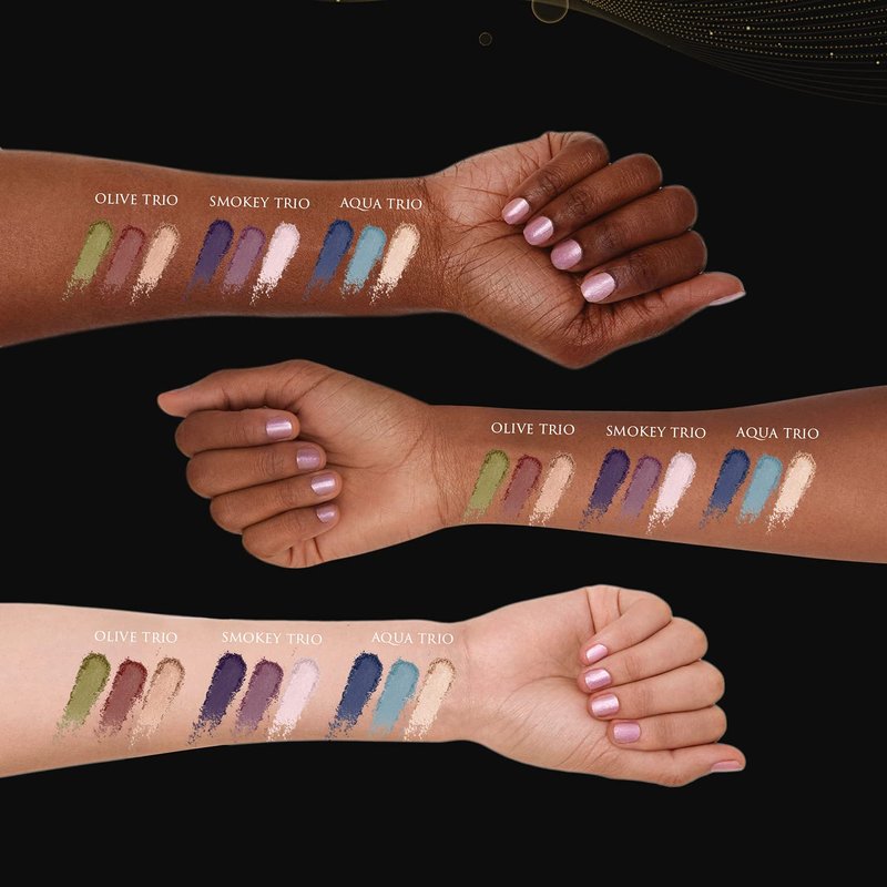 - Natural Aqua Trio: This eye shadow set includes three light, natural shades in a satin finish.