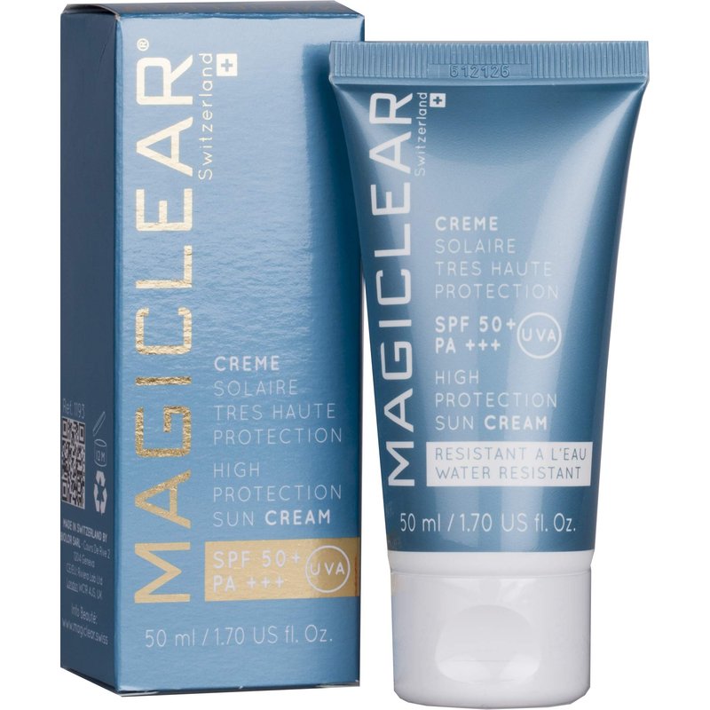 Luxury face Sunscreen SPF 50 PA+++ Daily sunblock for sensitive skin waterproof organic moisturizer mineral zink oxide suncream sun protector hypoallergenic natural Swiss brand Magiclear 1.7 Oz