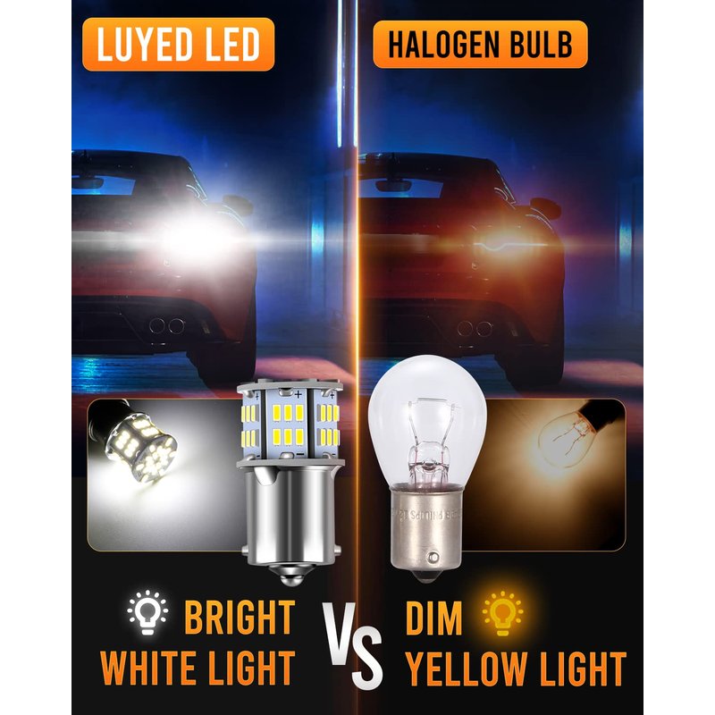 - ✔【Super Bright & Low Power】(Set of 2 bulbs,6500K,Xenon White) 1156 3014 54-EX Chipsets LED Bulbs,650Lumens&3.5W Per Bulb,Much Brighter Than Original Bulb.