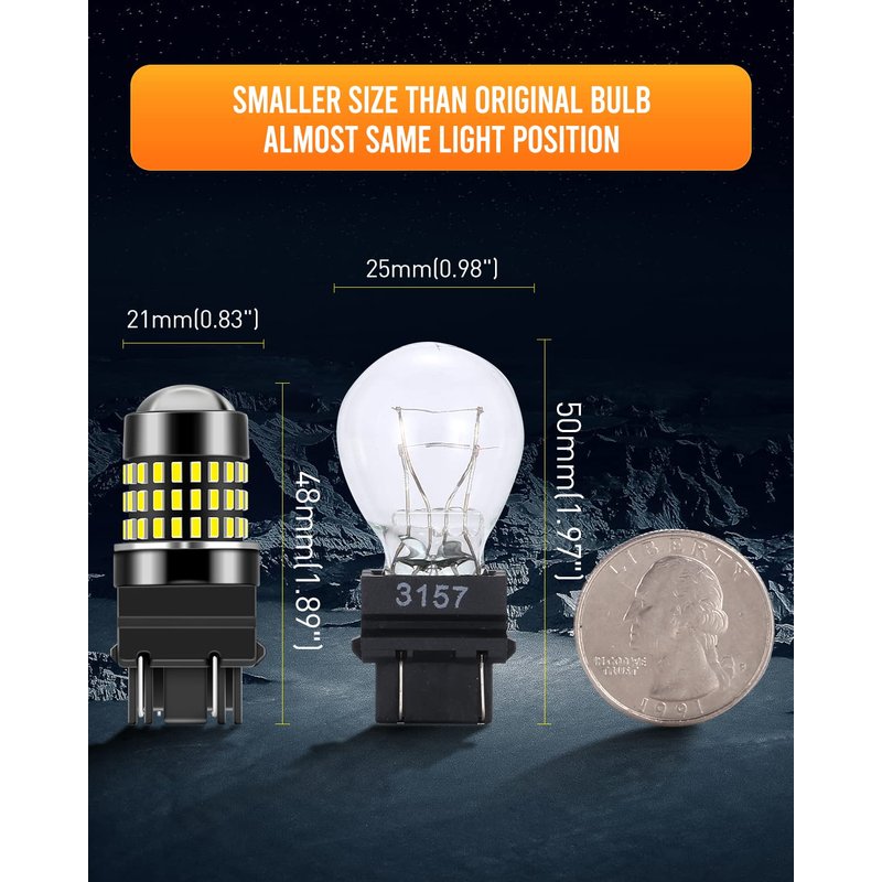 - ✔【Super Bright & Low Power】(Set of 2 bulbs,6500K,xenon white) 3157 3014 78-EX chipsets LED bulbs,total 1800 Lumens,3.6W per bulb,working voltage:Dc 9v-30v.For most vehicles, just Plug & Play replacement LED.