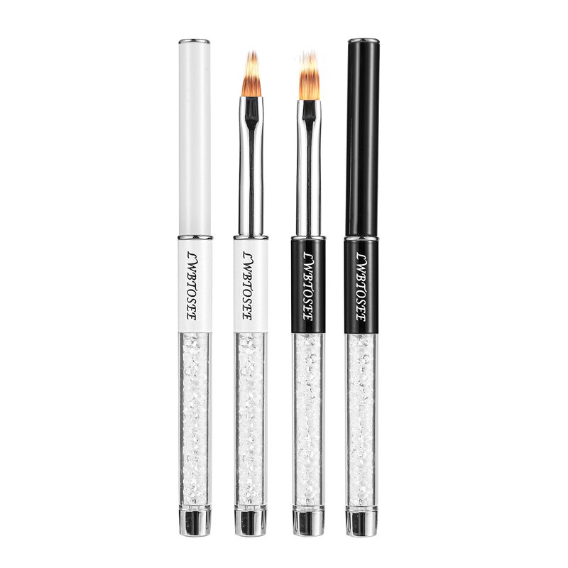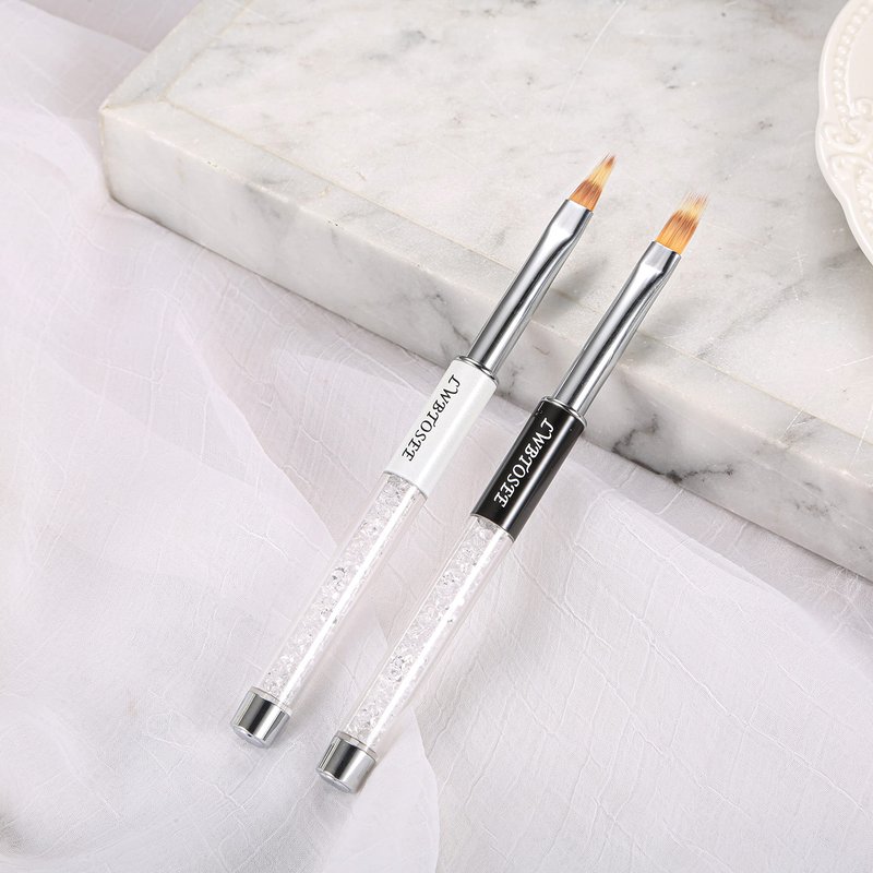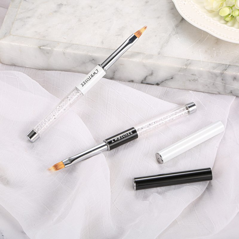 LWBTOSEE 2PCS Nail Ombre Brush Set - Gradient Color Nail Art Painting Pen with Rhinestone Crystal and Acrylic Drawing Pen for UV Gel Polish