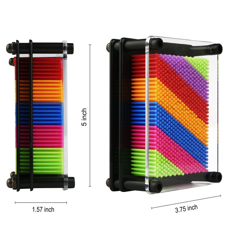- PACKAGE: Made of plastic pins and black plastic frame with clear plastic front.Pin art toy size: 3.75x 5 In