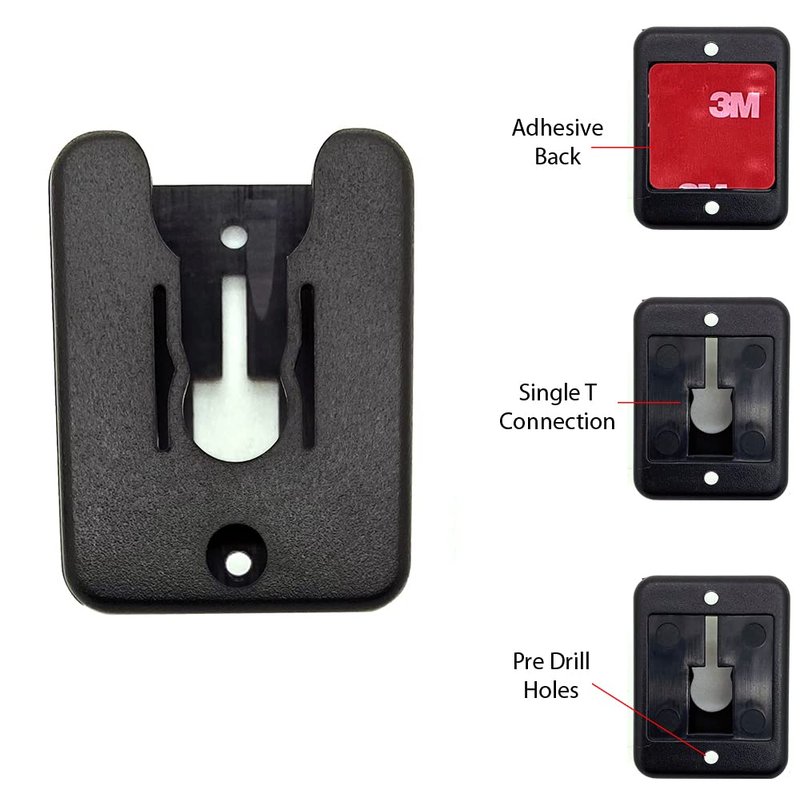 - 3-Ways to setup, 1)3M VBH adhesive back, 2) Drill in hard install (Drill Screws are not included) & 3) Single T compatible- This is compatible with all single T mounting solution in the market from makers like Arkon, bracketron, ProClip, Panvise & more