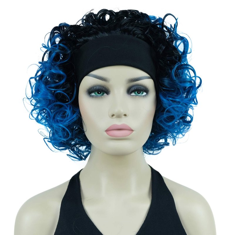 Lydell 12" Super Curly Wigs Ombre Black Blue Hair Synthetic Headband Wigs (1+T4330)