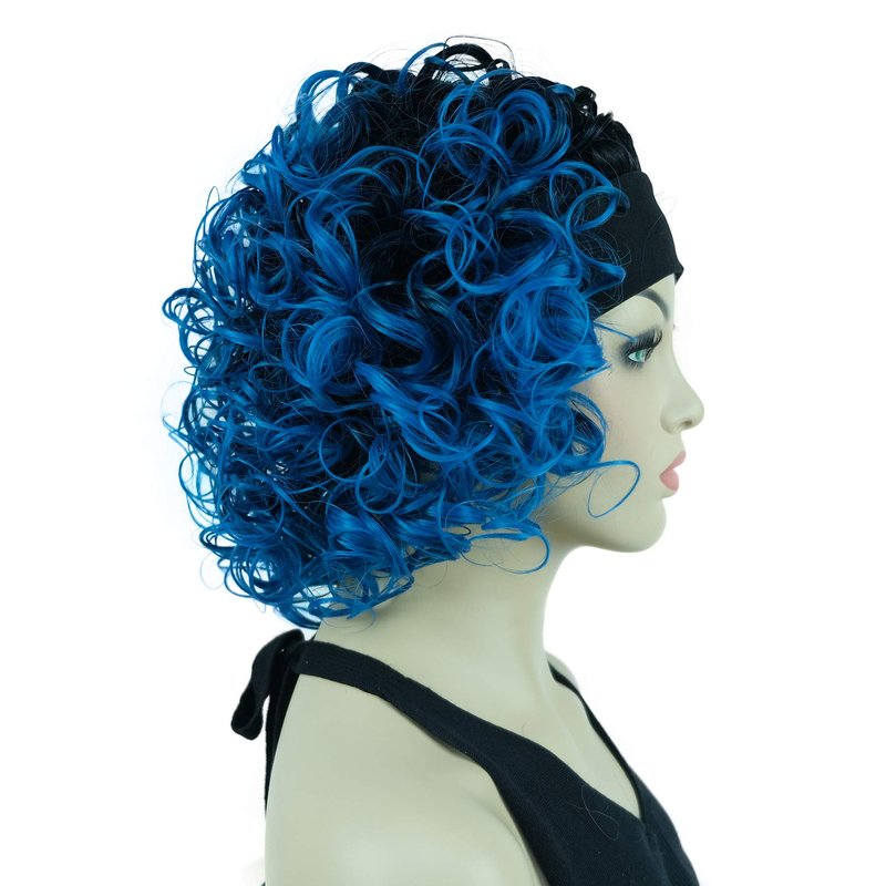 - Color: Black&Blue, Style: Curly 3/4 Head Wig with Headband, Length: 12 inch, Weight: 230g (8.1 oz), Cap Size: Average 22" - 22.75"