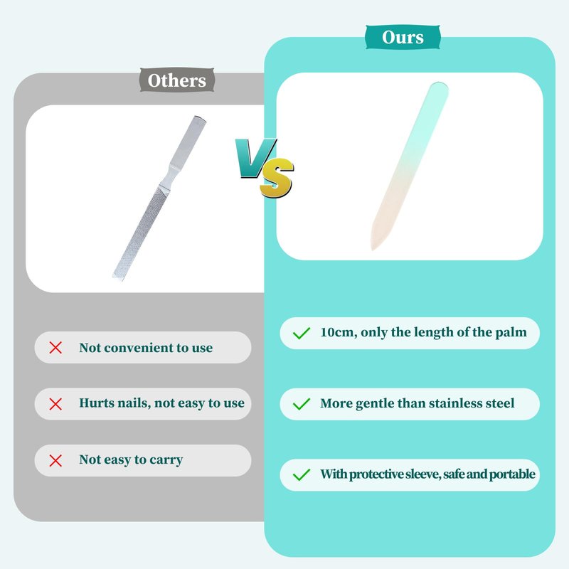[1]Special glass material -- this nail file is made of high quality float glass, with good toughness and earthquake resistance, but due to the long road, there may be individual products received damage, if your product is like this, please immediately apply for after-sales service, we unconditionally give you a satisfactory answer.