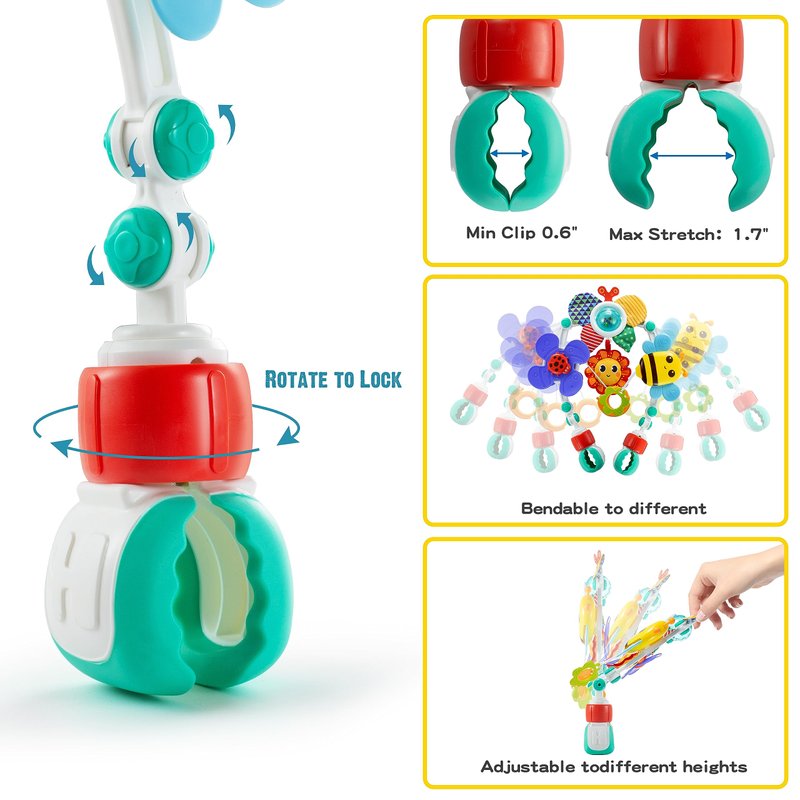 - Universal Stroller Arch:No matter if you have a stroller, car seat,bouncer,or Crib, this baby arch toy effortlessly accommodates any baby gear with its adjustable clips and straps, ensuring a secure and versatile fit.