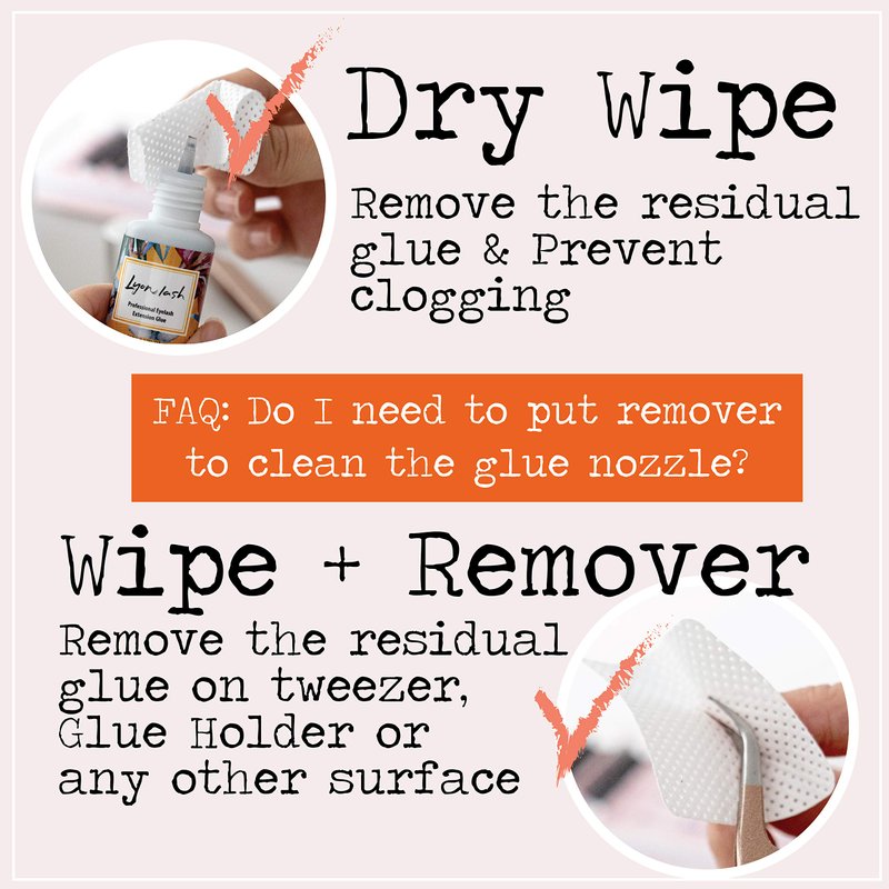 Suitable for cleaning the eyelash extension glue bottle nozzle and nail polish bottle. You can also use the wipes to clean lash extension supplies for example eyelash tweezers, jade or crystal pallet, lash holder with adhesive remover.