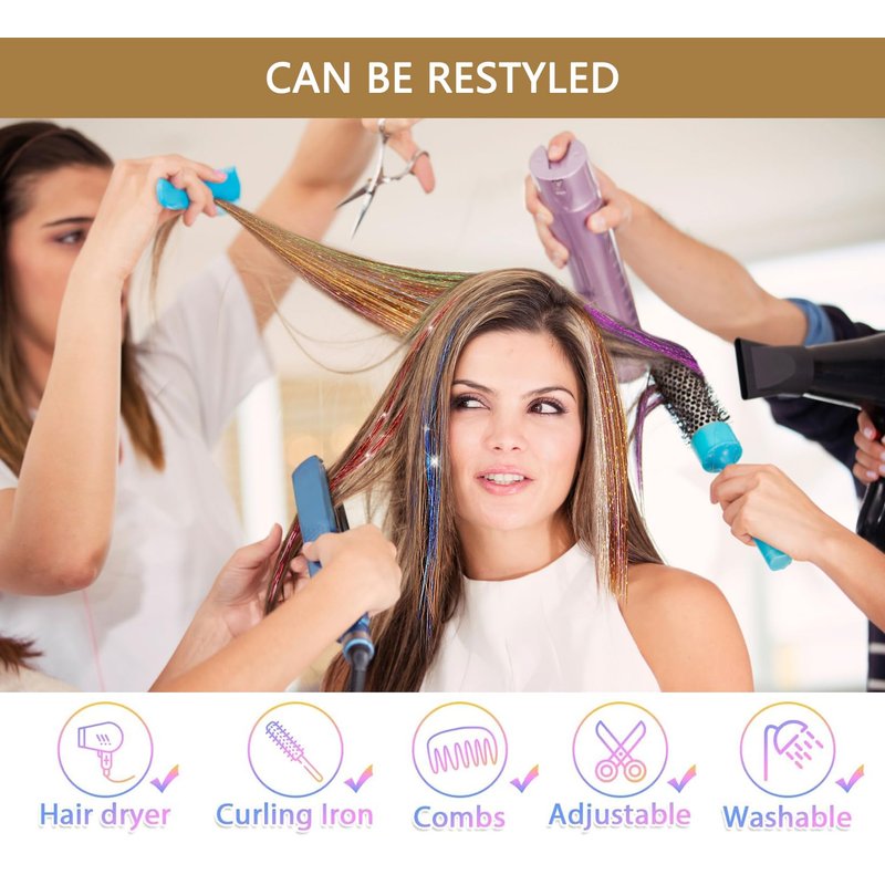 - Tinsel Hair Extensions: 36 inch are long enough; cut into different length according to your hair extension requirements; making you more shiny; beautiful and eye-catching to be a glitter goddess