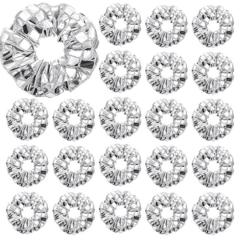 Lyrow 24 Pcs Disco Ball Sequin Hair Scrunchies Last Disco Bachelorette Party Favors Silver Metallic Hair Bobbles Elastics Ponytail Holders Mirror Disco Ball Retro 70s 80s 90s Disco Party Bridal Shower