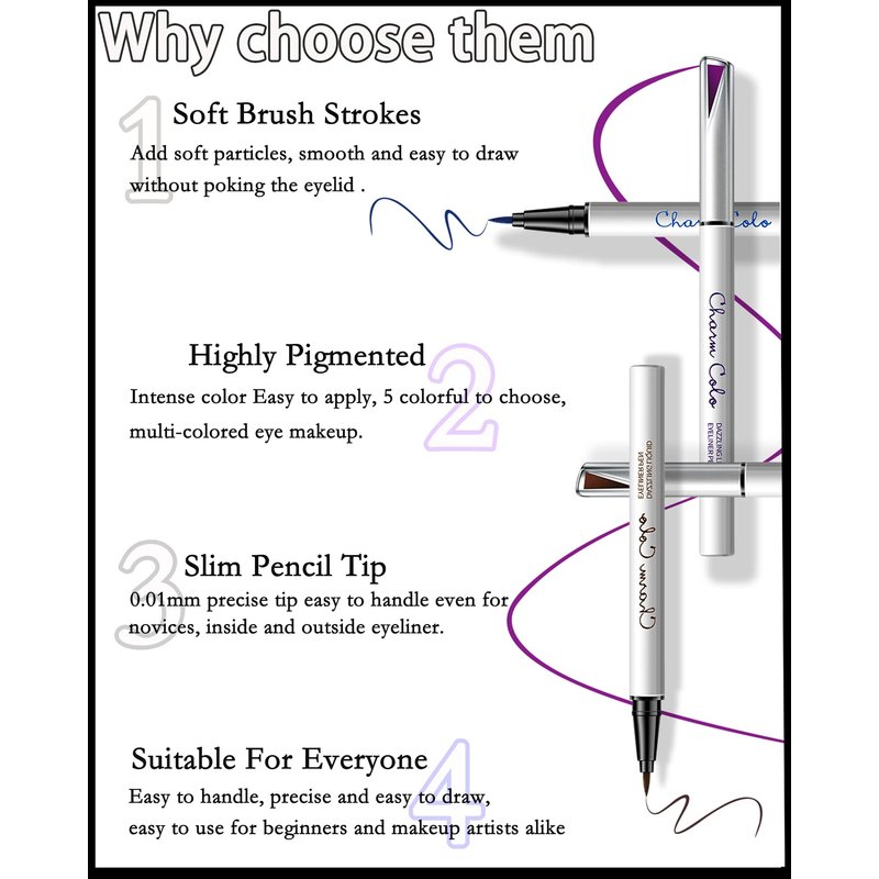 LYSdefeu Blue Purple Matte Liquid Eyeliner Pencil, 2Pcs