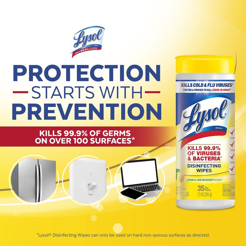 - DISINFECTING WIPES FOR CLEANING: Disinfect and deodorize with the fresh smell of Lemon & Lime Blossom Lysol Disinfecting Wipes. Safely wipe down spills and remove allergens, including pet dander, dust mites, and pollen.