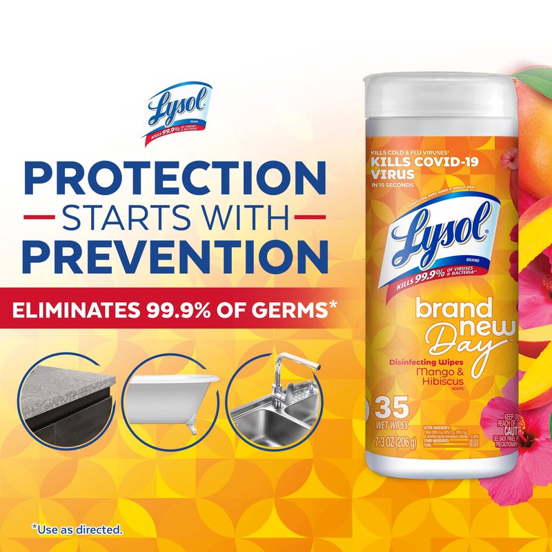 - DISINFECTING WIPES FOR CLEANING: Disinfect and deodorize with the fresh smell of Mango & Hibiscus Lysol Disinfecting Wipes. Safely wipe down spills and remove allergens, including pet dander, dust mites, and pollen.
