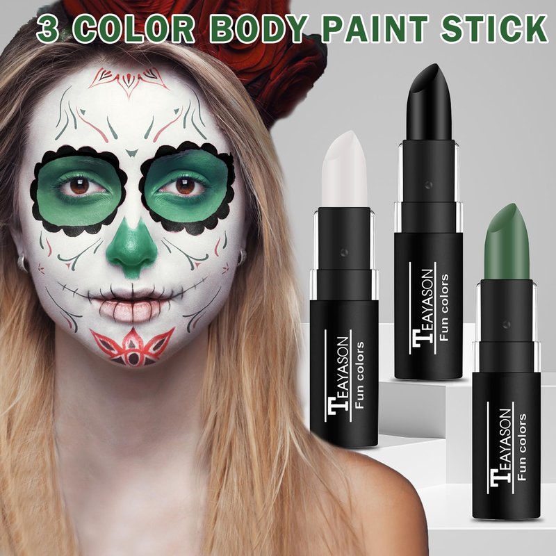 LZXLUKGIR 3 Colors Face Body Paint Sticks Professional Eye Black Football Baseball Softball,Highly Pigmented Halloween Facepaint Makeup Kit for Adults and Kids(White/Black/Green Eye Black Sticks)