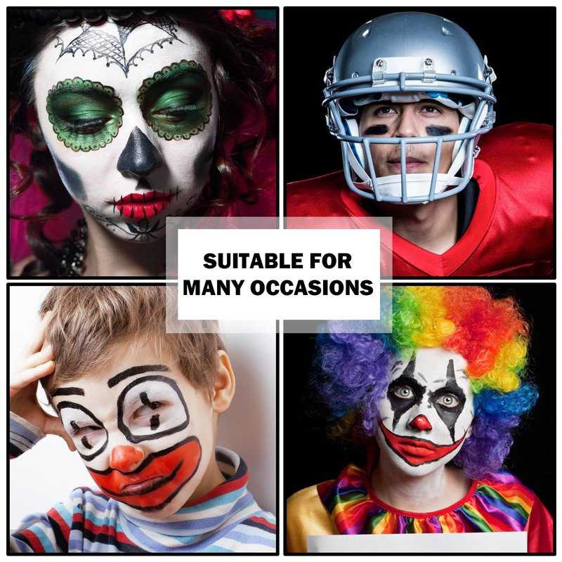 - 【Widely Used】Suitable for any sports games,such as basketball, football,baseball,softball,etc.,can also be used for Halloween makeup,SFX,clowns,skeletons,zombies,vampires and other role-playing
