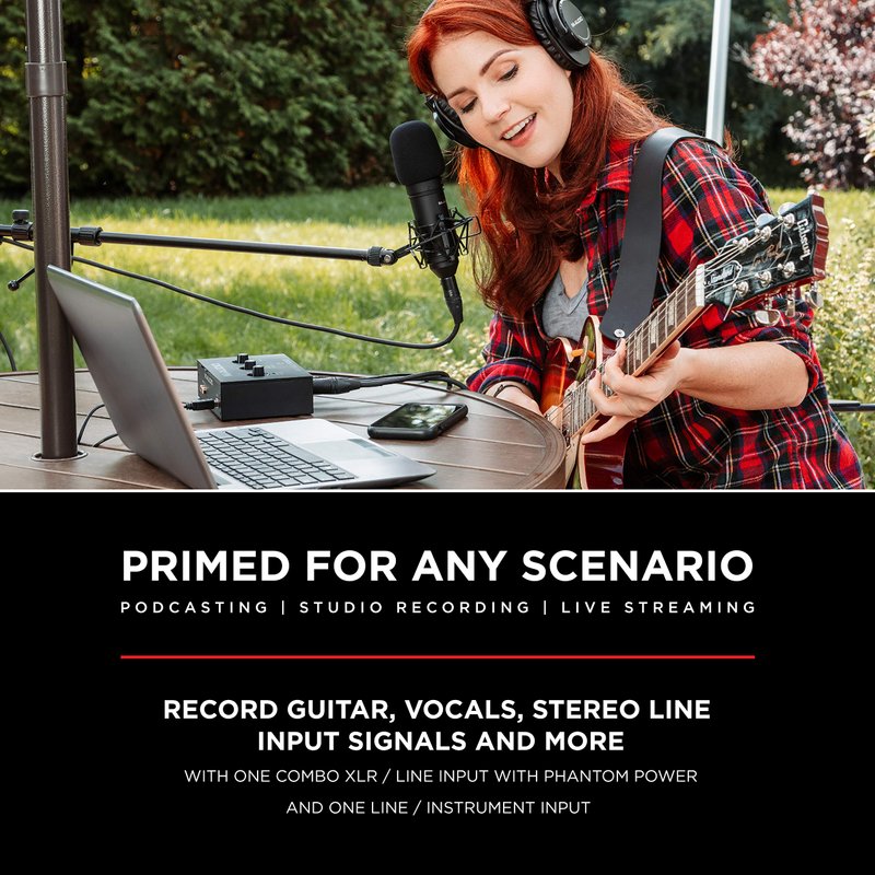 - Everything you Demand from an Audio Interface for Fuss-Free Monitoring – 1/8” headphone output and stereo RCA outputs for total monitoring flexibility; USB/Direct switch for zero latency monitoring