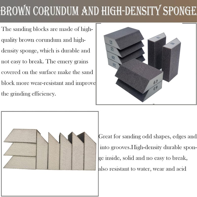 - Assorted Grit Sanding Blocks: This set includes 8 pieces of sanding sponges in 4 different grades-60/80/120/220 - coarse, medium, fine, and superfine. Each grit comes with 2 pieces, You can easily cut them into the desired sizes for your specific needs.