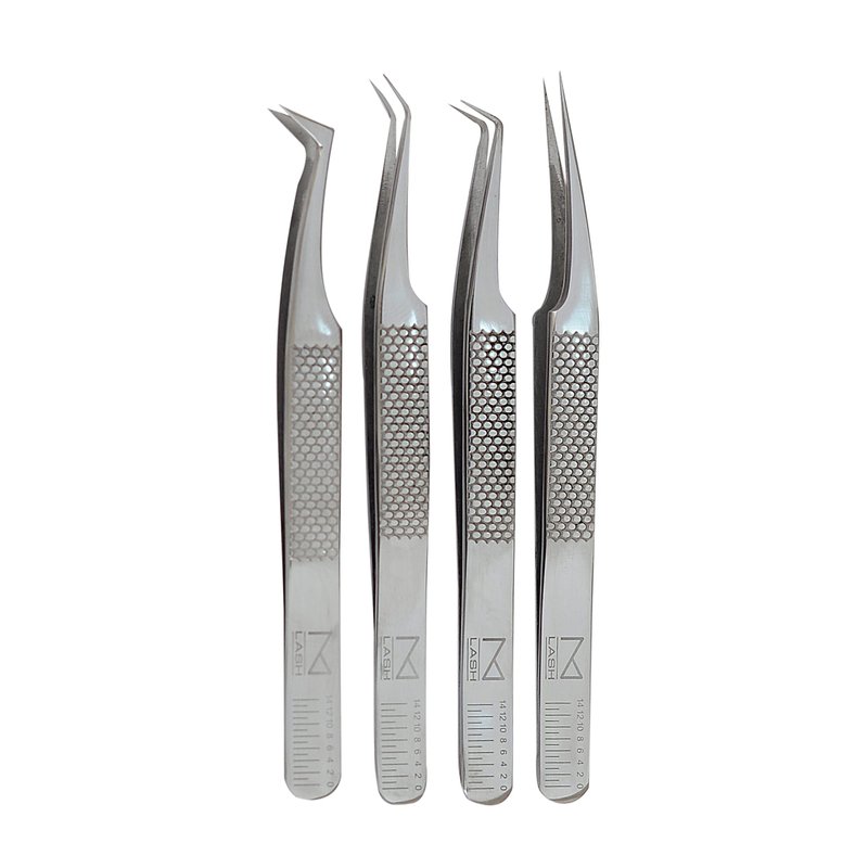 - Complete Set: The complete set includes 4 different precise tweezers that cover all eyelash extension needs. The kit comes with a volume tweezer for fan making, a 90-degree tweezer for the pinching method, a curved tweezer for isolation and eyelash placement as well as a 45-degree tweezer.