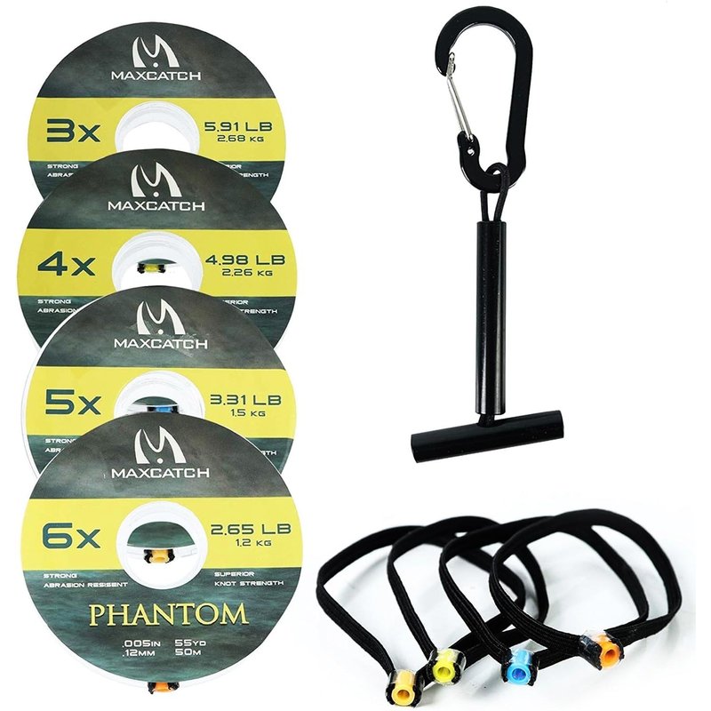 M MAXIMUMCATCH Maxcatch Fly Fishing Leader Tippet Material with Tippet Line Holder & Tender, Clear, 55Yds, 4PCS/6PCS (4 Pieces with Holder/50M, 1X+2X+3X+4X-50M-55Yds)