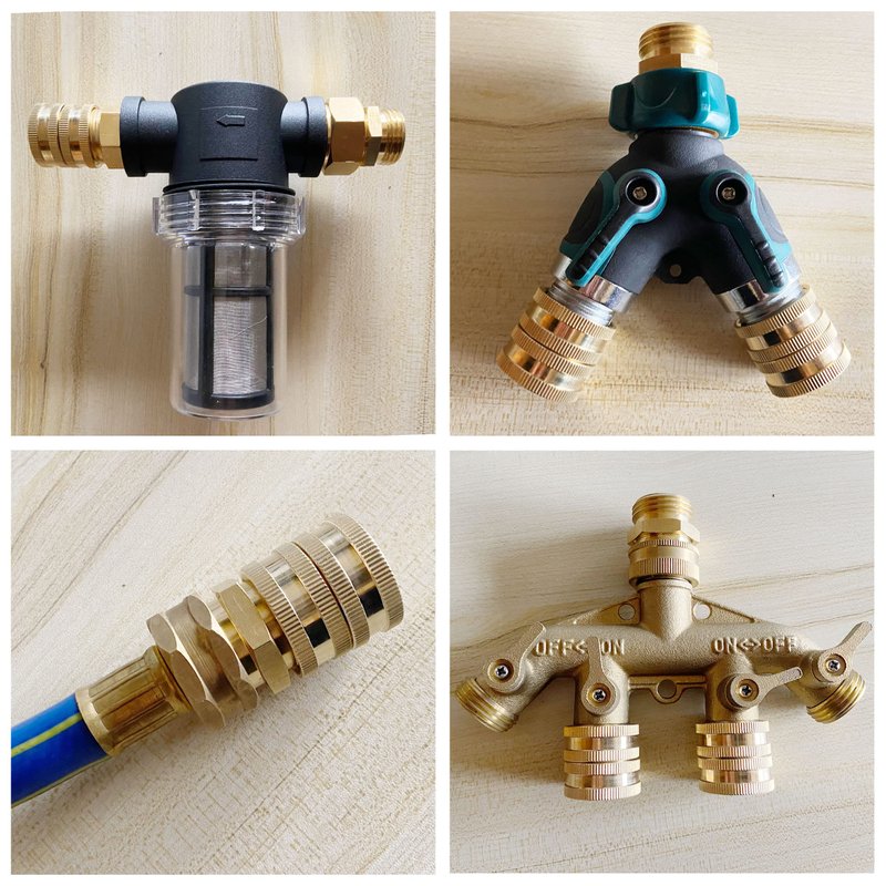 - Includes 2 pieces brass pipe with double male, 2 pieces brass connector with double female swivel and 4 extra garden hose washers.
