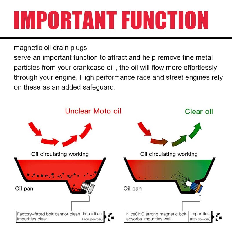 - 【Function】The Purpose of Designing a Magnetic Oil Drain Plug is Simply to Ensure a Better Engine Performance by Keeping The Metal Debris Away and Keep The Engine Oil Stored to Increase The Engine Life.