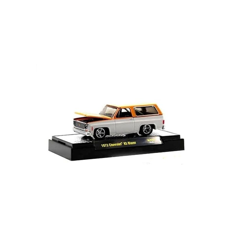 Brand new 1/64 scale diecast car model of 1973 Chevy K5 Blazer Orange Metallic and White Metallic Limited Edition to 6600 pieces Worldwide die cast model car by M2 Machines 31500-MJS45