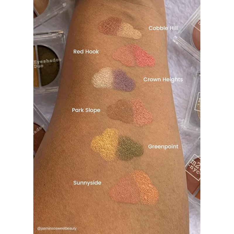 - COLORS: Choose from six combinations named after our beloved Brooklyn neighborhoods; shades in each of these matte and shimmer eyeshadow duos can be applied alone or layered beautifully together, taking the guesswork out of creating sophisticated eye looks!