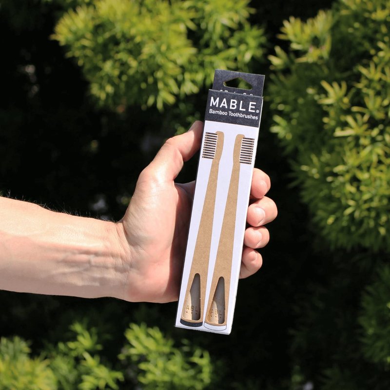 The Mable Bamboo toothbrush is made from Sustainably harvested bamboo, certified by the FSC. The bamboo handle has a painted bottom, made with plant based paints so you can tell your brush apart from your family or room mates. The bamboo handle is certified by the USDA as 100% bio-based, which means it is full compostable once the bristles are removed. The bristles are made from soft, charcoal infused, BPA-free nylon, with a tapered end for extra softness. Dentists recommend you change your brush every 3 months to make sure bristles remain soft and effective. This toothbrush is self standing and you do not need a toothbrush holder or cup. Our two pack is packaged in plastic-free, recyclable cardboard. Grab one today.