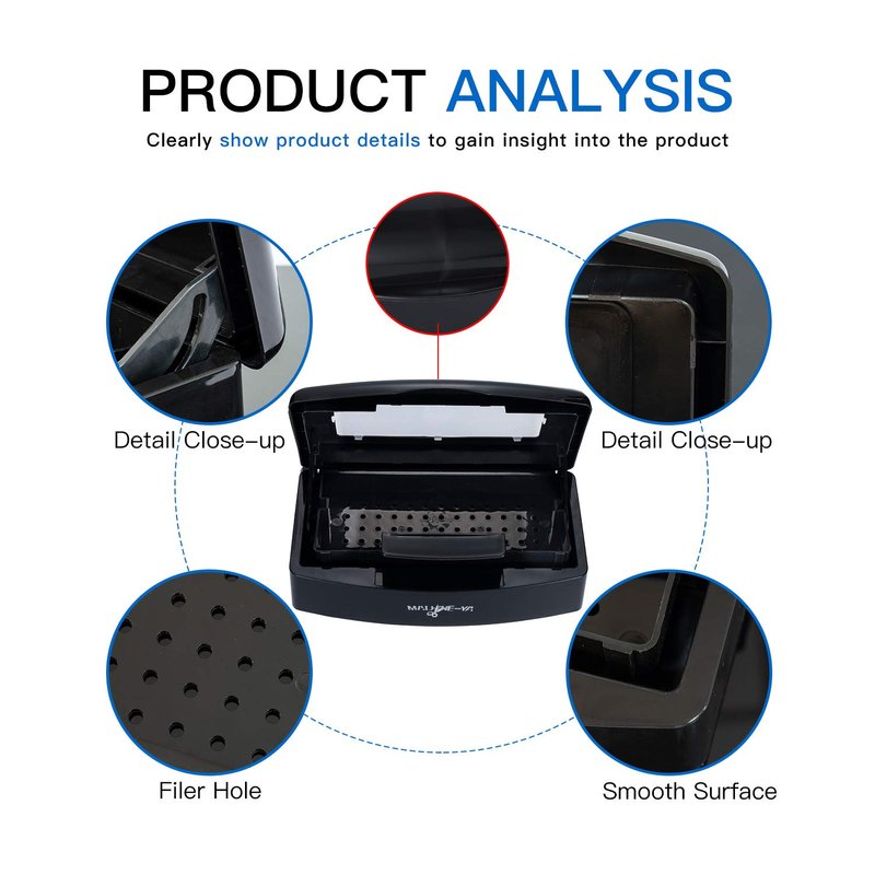 5. After the nail tools are disinfected, you can open the lid and the tray is automatically lifted. The holes on the tray will automatically drain the disinfectant.