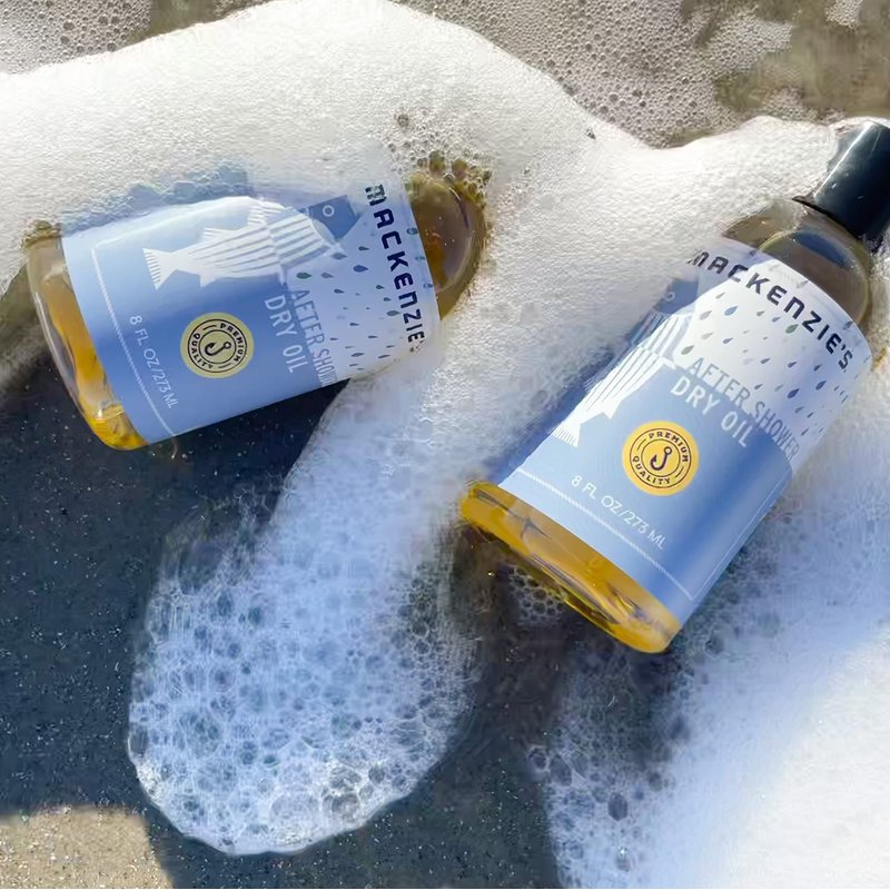 MacKenzie's After Shower Dry Oil is a special blend of fast absorbing plant-based oils to provide intensive skin moisturizing. Scented with the gentle aroma of Bay Essential Oil. MacKenzie's Specially formulated products are designed for life lived by the water. Made in New England.