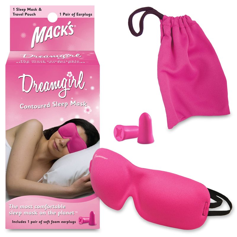 Mack’s Dreamgirl Contoured Sleep Mask – Pink, Comfortable, Adjustable, 2 Strap Eye Mask with Mack’s Dreamgirl Soft Foam Earplugs