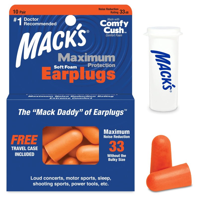 Mack’s Maximum Protection Soft Foam Earplugs – 10 Pair, 33 dB Highest NRR – Comfortable Ear Plugs for Sleeping, Snoring, Loud Concerts, Motorcycles and Power Tools | Made in USA
