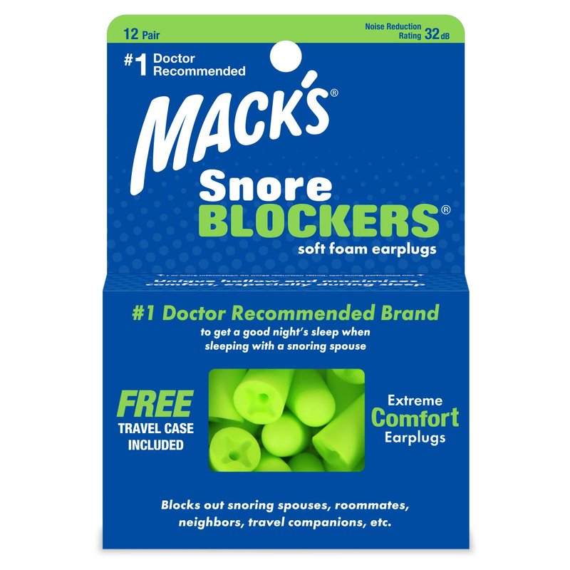 Mack’s Snore Blockers Soft Foam Earplugs, 12 Pair – 32 dB High NRR, 37 dB SNR – Comfortable Ear Plugs for Sleeping, Snoring, Loud Noise and Travel