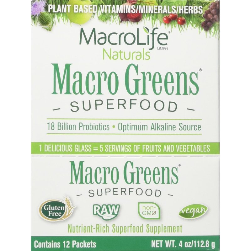MacroLife Naturals Macro Greens Powder 38 Superfood Probiotic Antioxidant Enzyme & Herbal Supplement Immunity Energy Cleanse - Non-GMO Vegan Gluten-Free Dairy-Free - 12 Packet Servings