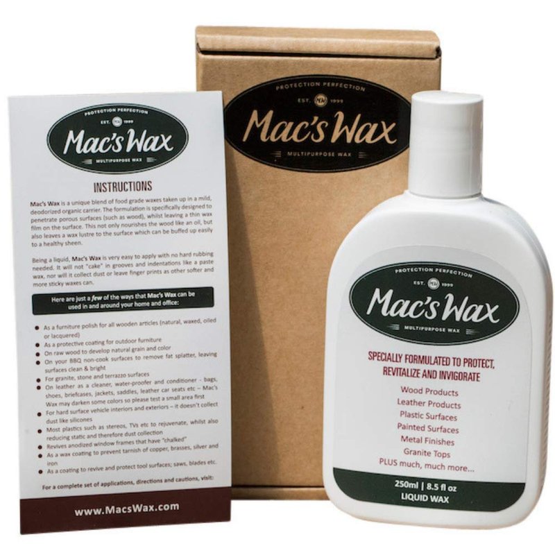 Mac's Wax Multipurpose Liquid Wax, Wooden Furniture Polish, Leather Conditioner, Stainless Cleaner and Surface Restoration Treatment for a Very Wide Variety of Interior and Outdoor Items. 8.5 Ounces