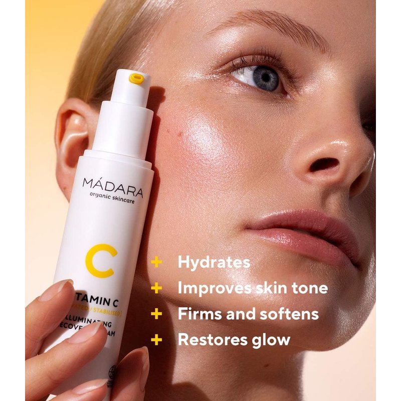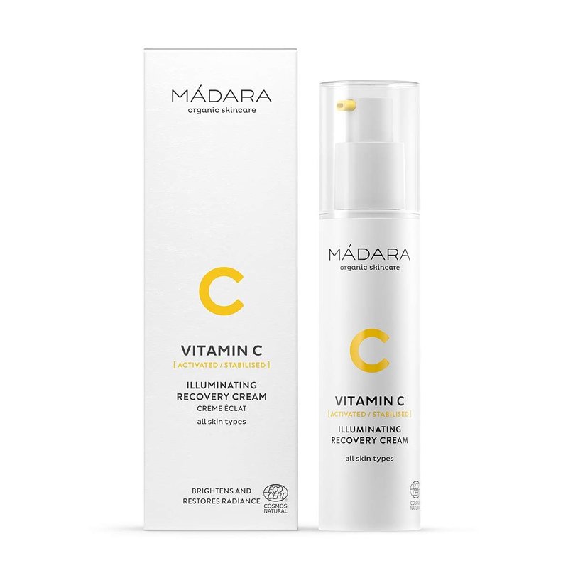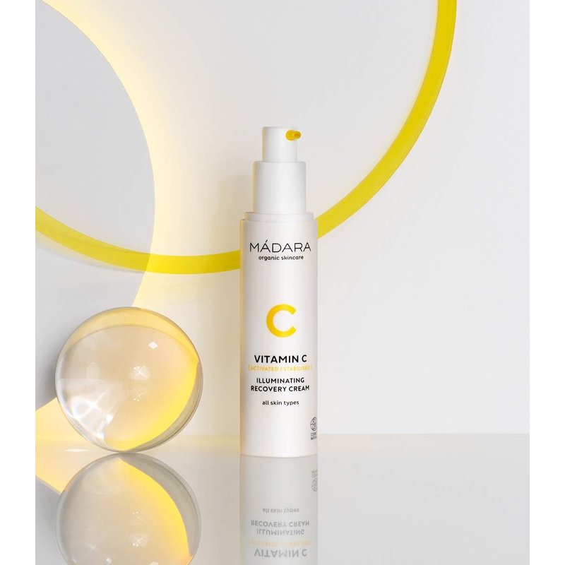 MÁDARA Organic Skincare | Vitamin C Illuminating Recovery Cream – 50 ml, Vitamin C moisturiser with hyaluronic acid, Hydrating and brightening face cream, All skin types, Vegan, Ecocert certified