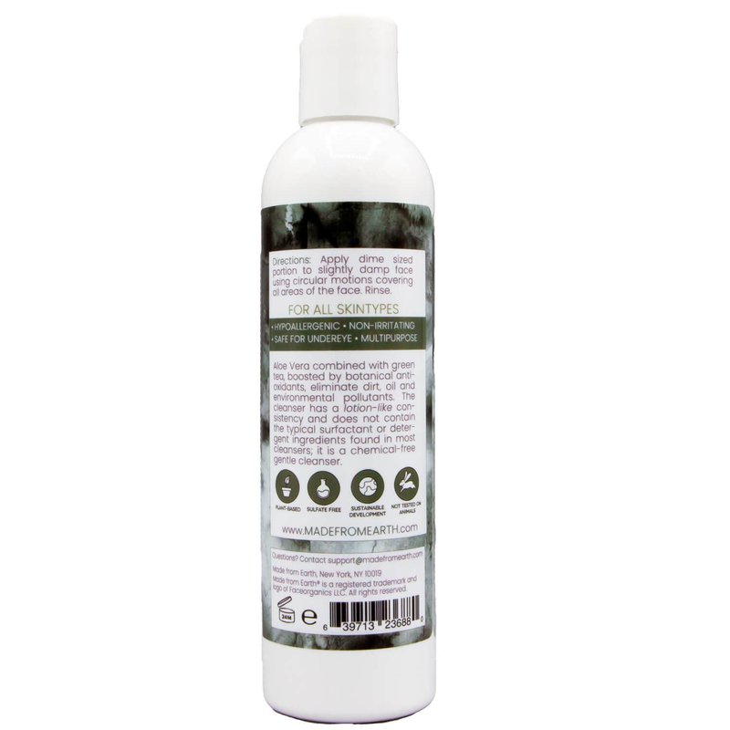 Made from Earth Green Tea Face Cleanser - Vitamin A, C and Plant Proteins for All Skin Types, 8 oz.