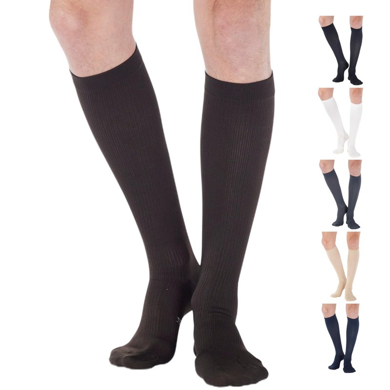 Made in USA - Compression Knee High Men 20-30mmHg - Mens Graduated Compression Stockings for Swelling, Lymphedema, Post Surgery - Brown, Medium - A104BR2