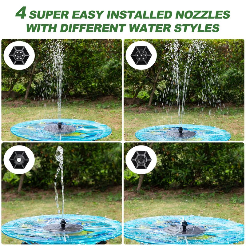 - MUTIPLE APPLICATIONS: Just put in the water, the pump will start to work in 3s once exposed to sufficient sunlight, perfect for bird bath, fish tank, small pond, pool, garden decoration, water circulation for oxygen. (Solar fountains does not store energy, may not work on cloudy days, please make sure the product is used in direct sunlight, and it is recommended to use it in clean water, which will prolong the life of the product).
