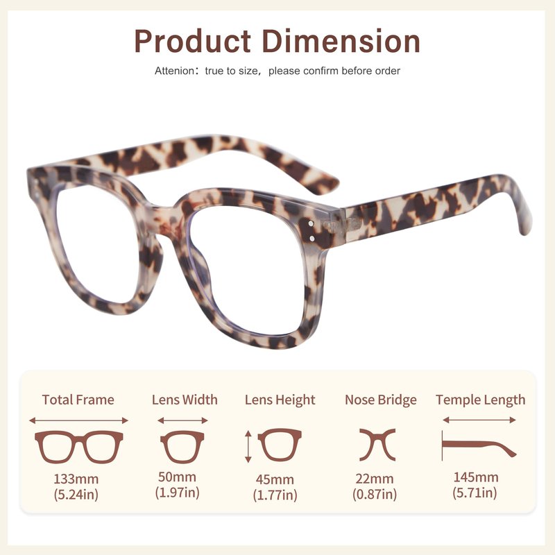 - Product Dimension: Lens width - 50mm,lens height - 45mm,temple length - 145mm,nose bridge - 22mm, suitable for various face.