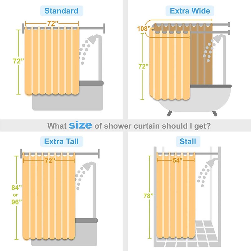 - SIZE -- besides the conventional size 72x72; we also offer size like 107x72" , 54x78" ; you can choose the right size for your bath room