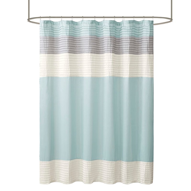 Madison Park Amherst Bathroom Shower Curtain Faux Silk Pieced Striped Modern Microfiber Bath Curtains, 72x72 Inches, Aqua