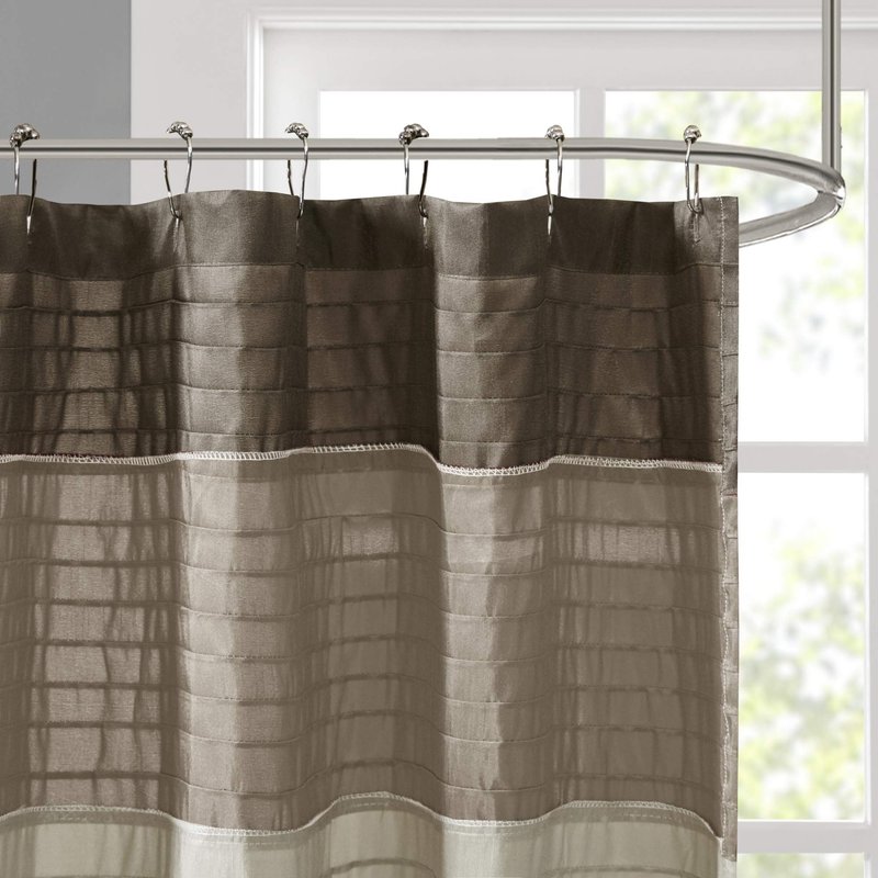 Madison Park Amherst Bathroom Shower Curtain Faux Silk Pieced Striped Modern Microfiber Bath Curtains, 72x72 Inches, Natural