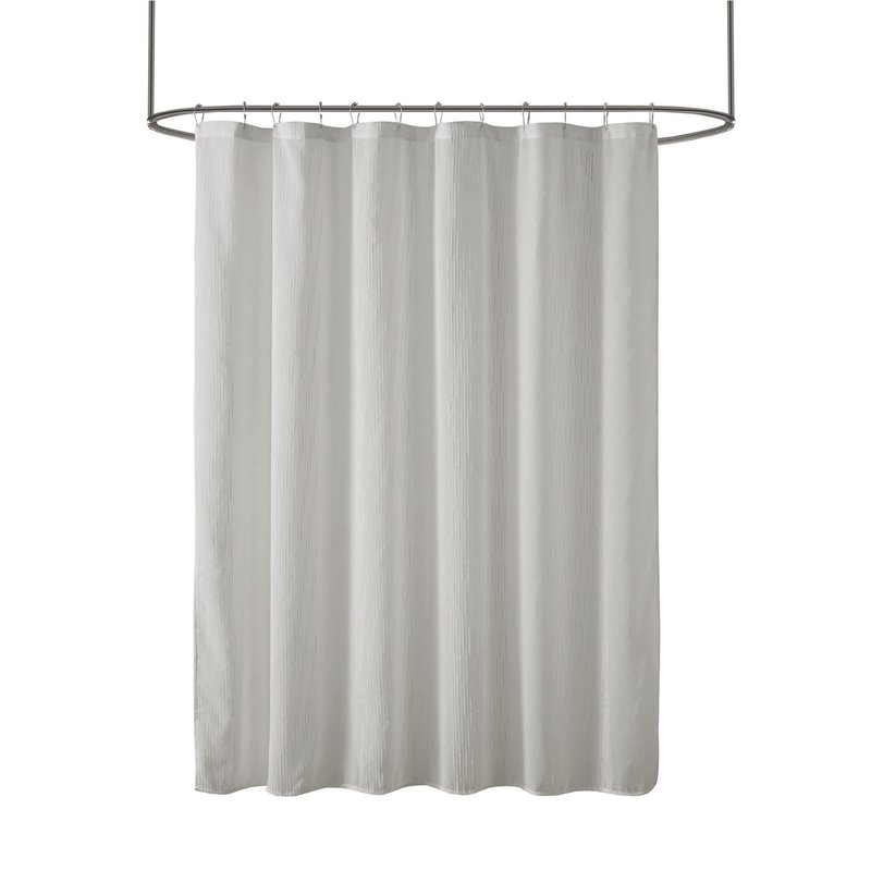 Madison Park Anna Sheers Shower Curtain, Textured Striped Accent Design, Modern Mid-Century Bathroom Decor, Machine Washable, Fabric Privacy Screen 72x72, Grey