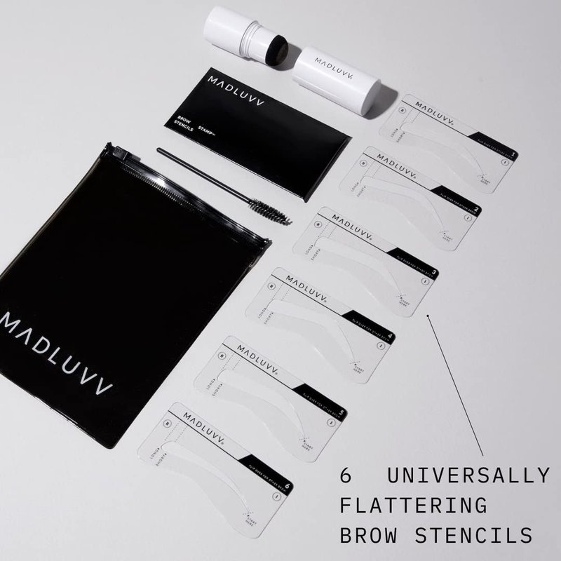 The Madluvv Brow Stamp is a full-pigment, water and sweat resistant eyebrow pomade formula that helps fill in brows PERFECTLY every time! This blendable, long lasting formula comes in 9 shades and goes on smoothly to skin and hair leaving a matte finish. The brow stamp comes with 6 stencil shapes to ensure you can have the PERFECT BROW!
