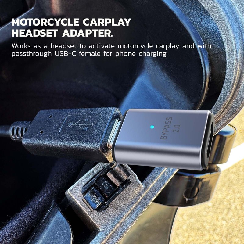 - Ideal for new motorcycle infotainment systems allowing CarPlay to play through speakers without carrying a motorcycle headset. The Motorcycles Infotainment system must support a Bluetooth headset connection. Passthrough USB C port allows for phone charging.