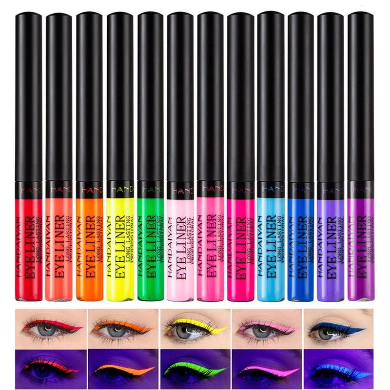 - đăVivid High-pigmented ColorsăMAEPEOR Liquid Eyeliner fits any kinds of skin with 12 pop colors, high precision tip that draw sharp line, intense colouring. It's great for artistic make up or for parties or costume events, perfect for daily wear and Halloween Christmas. They are bright, bold and give any look a wild side.