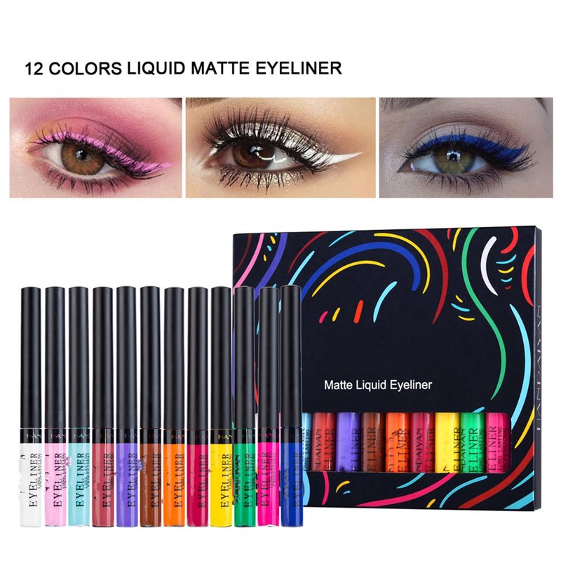 MAEPEOR 12 Color Matte Liquid Eyeliner Set Smooth Pigmented Colorful Eyeliner Line Pen Waterproof Smudgeproof Long Lasting Eyeliner Eyeliner Eye Makeup Gift Kit for Women and Girls (Set 01)