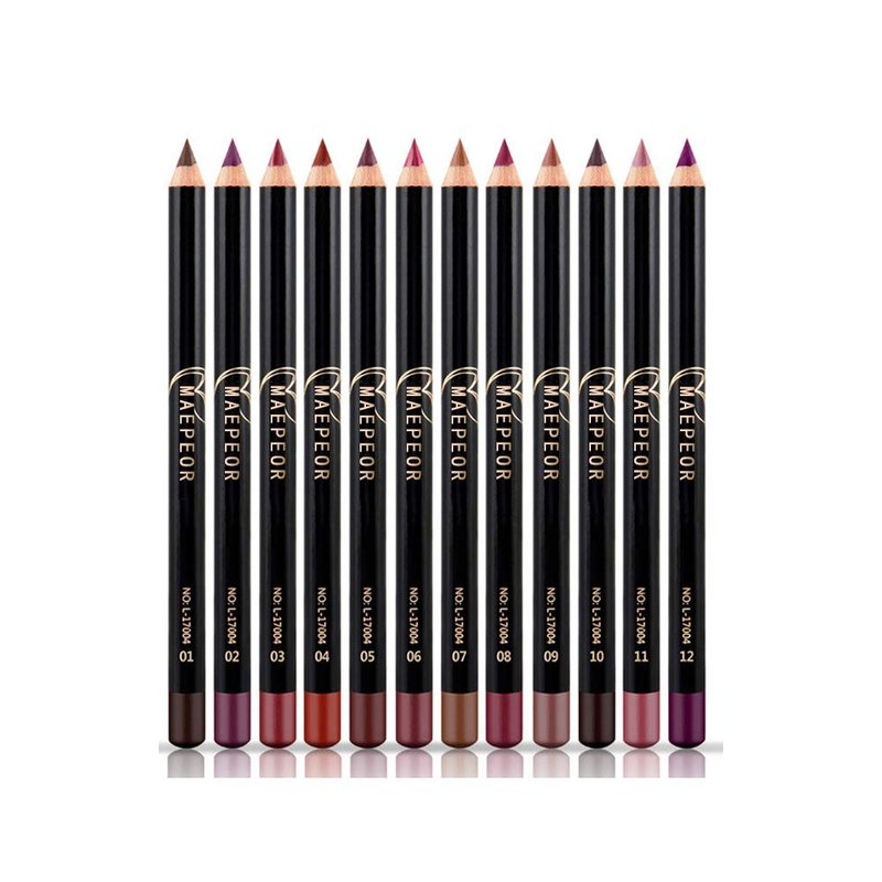 - đăClassic Nude-brown ColorsăMAEPEOR Matte Lip Liner Nude-brown Series Set provides 12 colors that you have the variety of colors you need to match all my different shades of lipstick and lipgloss. They literally match most any lip stick color or match your skin tone.Even though you are in Miami or that you have dark east indian lips, you'll be able to find the perfect color that suits you.(the color as the pics.)