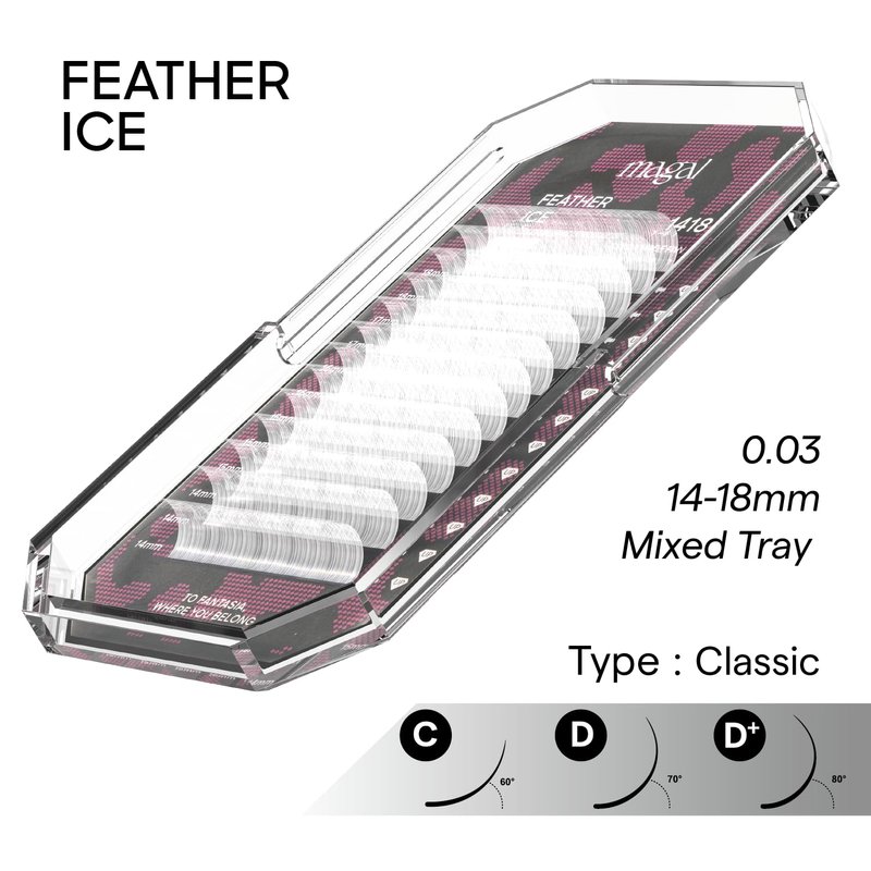 - Feather ICE Lash Tray: Introducing the Feather ICE lash tray by Magal, the ultimate tool for lash extension artists who demand perfection. With its precision-engineered design and superior materials, the Feather ICE lash tray is designed to elevate the art of lash extensions to new heights. Whether creating natural-looking enhancements or dramatic, voluminous effects, Magal lash trays provide the versatility and performance artists need to bring their vision to life.